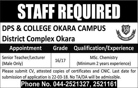 - For Senior Teacher BS-16 / Lecturer BS-17