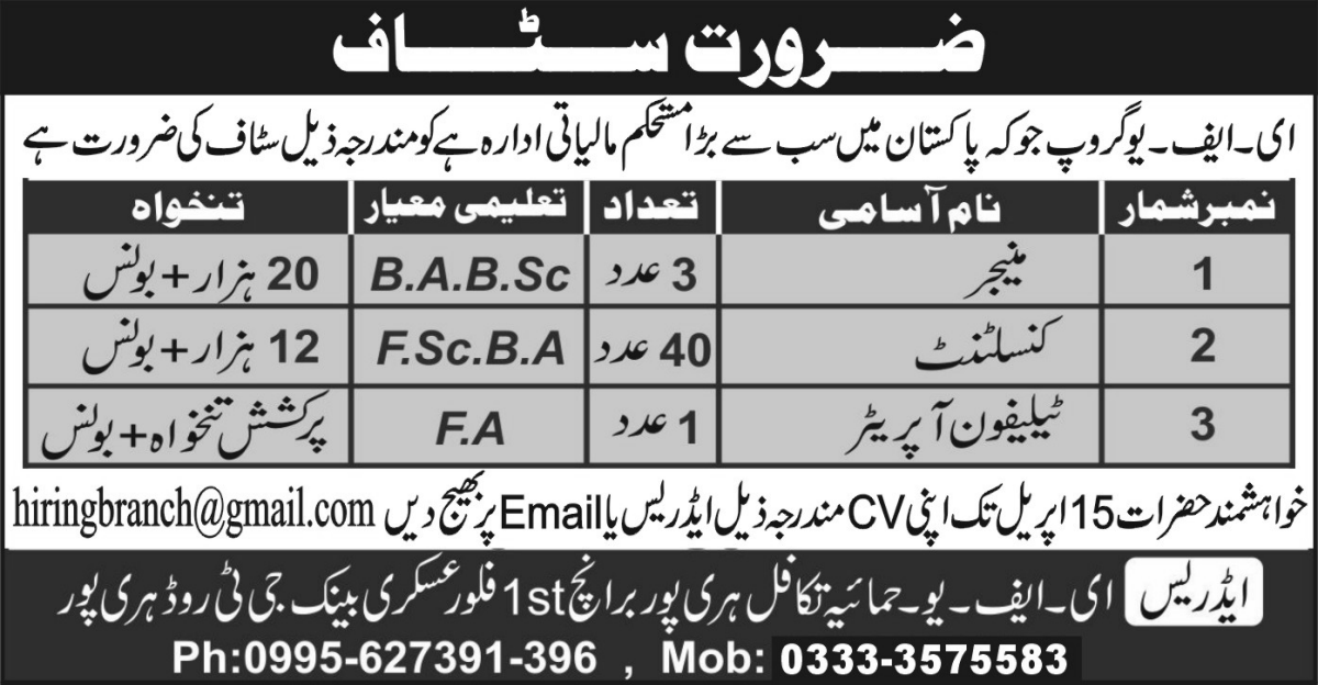Qualifications & Age Limit: Please see job Advertisement below for relevant experience, qualification & age limit information.