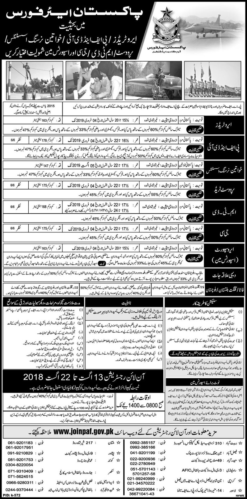 The Pakistan Air Force is the aerial warfare branch of the Pakistan Armed Forces, tasked primarily with the aerial defence of Pakistan, with a secondary role of providing air support to the Pakistan Army and the Pakistan Navy. Pakistan Air Force (PAF) has announced vacancies for the male / female. They are invited the Qualified Staff Those Candidates who Fulfill The Required Qualification, Age Experience and All other Requirements which are Published in Jobs Advertisement they can Apply For Following Vacant Positions: