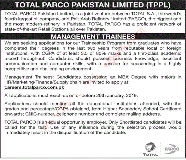 TOTAL PARCO Pakistan Limited, is a fourth largest oil company in the world. TOTAL PARCO has a proficient network of state-of-the-art Retail Stations all over Pakistan. Now they are seeking applications for their Trainee-ship Program from graduates completed their degree in the last two years from HEC Recognized Universities.