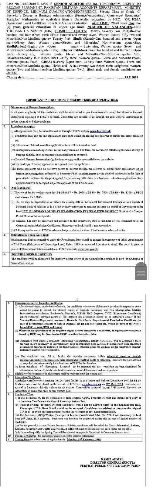 Federal Public Service Commission FPSC had announced the Vacancies: 1007 Senior Auditor BS-16 in Pakistan Military Accounts Department ( Pakistan Army ). They are invited the Qualified Staff Those Candidates who Fulfill The Required Qualification, Age Experience and All other Requirements which are Published in Jobs Advertisement they can Apply For Following Vacant Positions: