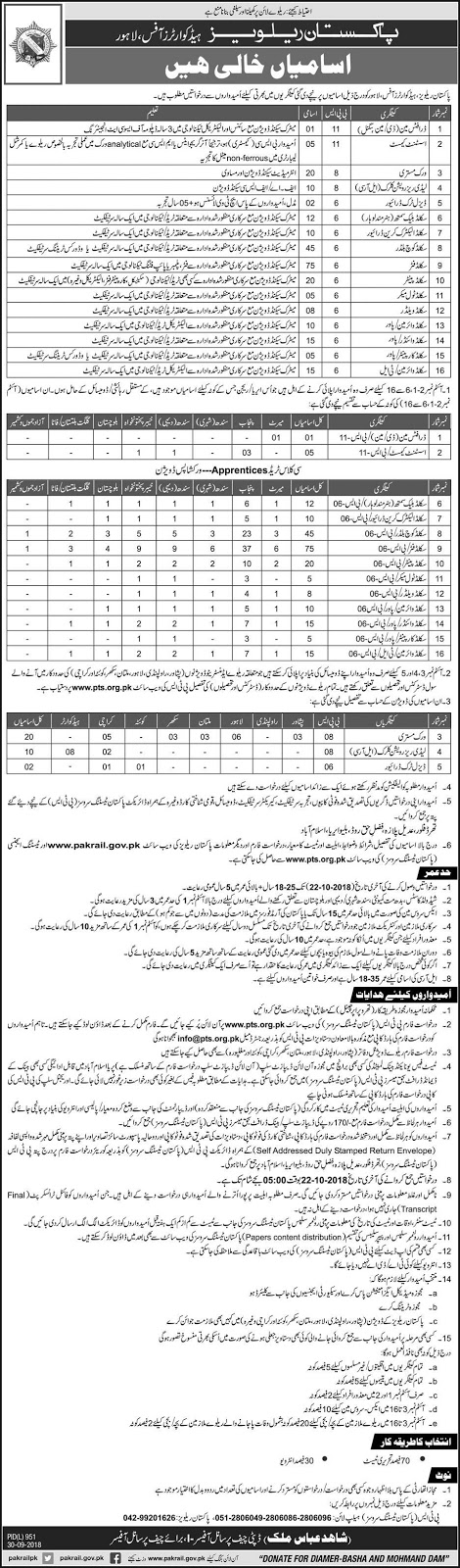 Pakistan Railways is the national, state-owned railway company of Pakistan. Founded in 1861 and headquartered in Lahore, it owns 4,800 miles (7,791 km) of track across Pakistan from Torkham to Karachi and operates freight and passenger service. They are invited the Qualified Staff Those Candidates who Fulfill The Required Qualification, Age Experience and All other Requirements which are Published in Jobs Advertisement they can Apply For Following Vacant Positions: