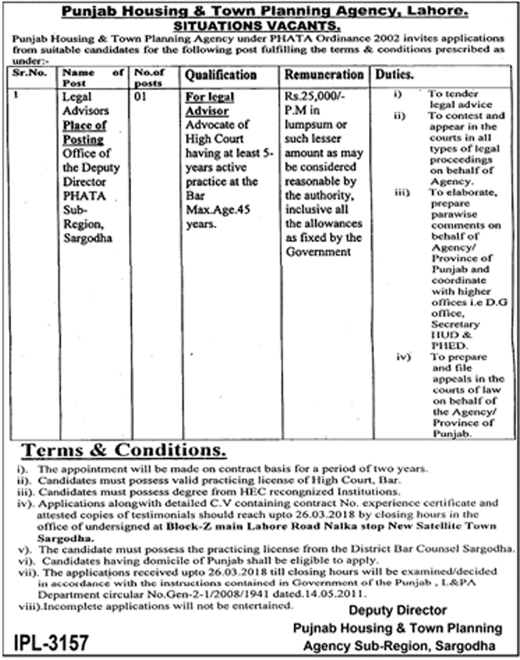 Punjab Housing & Town Panning Agency Lahore Jobs 2018 PHATA