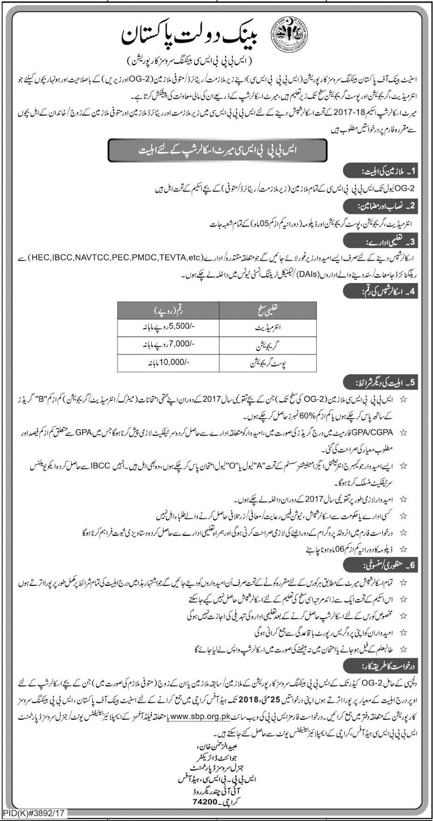 State Bank of Pakistan (SBP) Merit Scholarship 2018