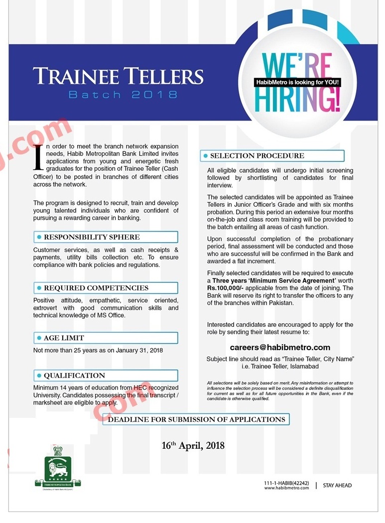 Interested eligible candidates needs to send CV at careers@habibmetro.com